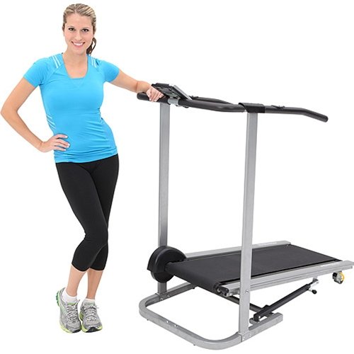 Treadmill Fitness Walking is an effective way to burn extra calories and achieve a healthy lifestyle. Walking on a manual treadmill is one of the easiest and most effective ways to achieve a regimen of regular exercise. Fitness walking can help you lose body fat, tone muscles and is a great way to stay in shape. The Exerpeutic 250 Manual Treadmill gives you benefits of minimal assembly out of the box, uses no electrical power and is maintenance free. Unlike most of other manual treadmills, the Exerpeutic Manual starts at a low and efficient 9% incline level preventing strain on ankles and leg muscles as you begin walking. EXTENDED WEIGHT CAPACITY: Tested up to 260lbs of user weight. FRAME: Steel Frame with powder coated finish. Wide side rails for safety. PULSE MONITOR: Heart pulse sensors allows the user to measure target heart rates zones and heart pulse levels SAFETY FEATURES: Extra-long safety handles with foam grips are more than 2 X the length of other typical manual treadmill handles, providing for walking security and preventing any loss of balance. You will never feel unsafe on this treadmill! MANUAL INCLINE: Quick Release (patent pending) incline adjustments features quick and easy 2 position incline levels of 9% and 12% respectively ASSEMBLY: Some assembly required TRANSPORTATION WHEELS: Transportation wheels allow the treadmill to be moved easily from room to room or just moving around. TREADMILL BELT SIZE: 41’L x 13”W STORAGE: Folds up easily for storage. Could easily fit in a closet where room space is premium FOLDED DIMENSIONS: 57”H x 23”W x 18”D COMPUTER: LCD display window features elapsed time, distance walked, calories burned, speed and heart rate monitoring. QUIETNESS: The precision balanced 7 lb flywheel provides quietness during operation. It will not interfere with watching TV or listening to music. WARRANTY: 1 Year Limited (See Owner’s Manual for details) SET UP DIMENSIONS: 51”L x 26”W x 50”H SET UP WEIGHT: 30lbs ORIGIN: China